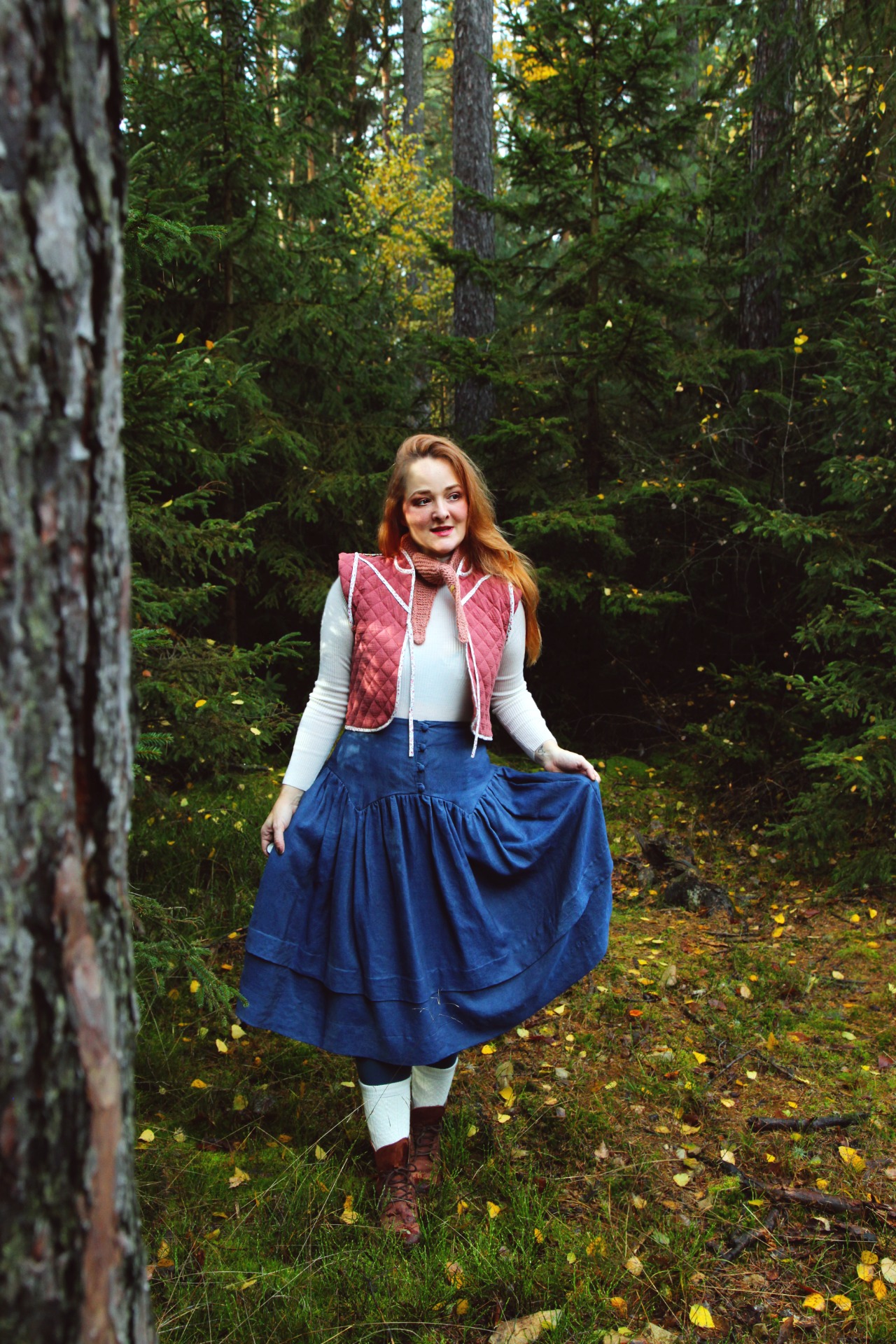 Romantická řasená sukně s mašličkami a kapsami.