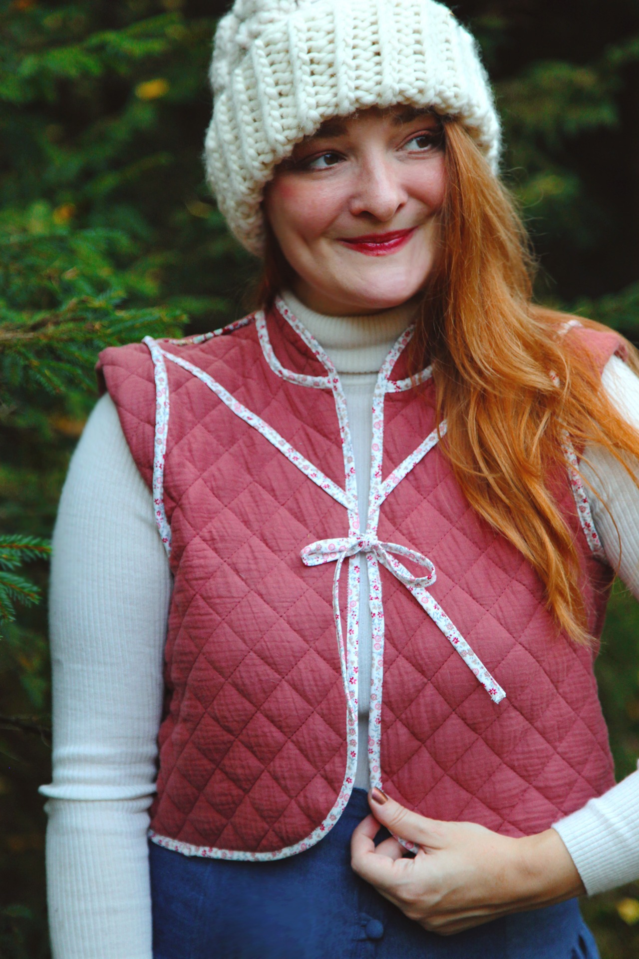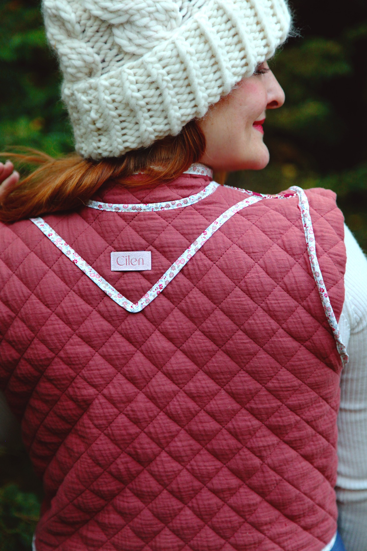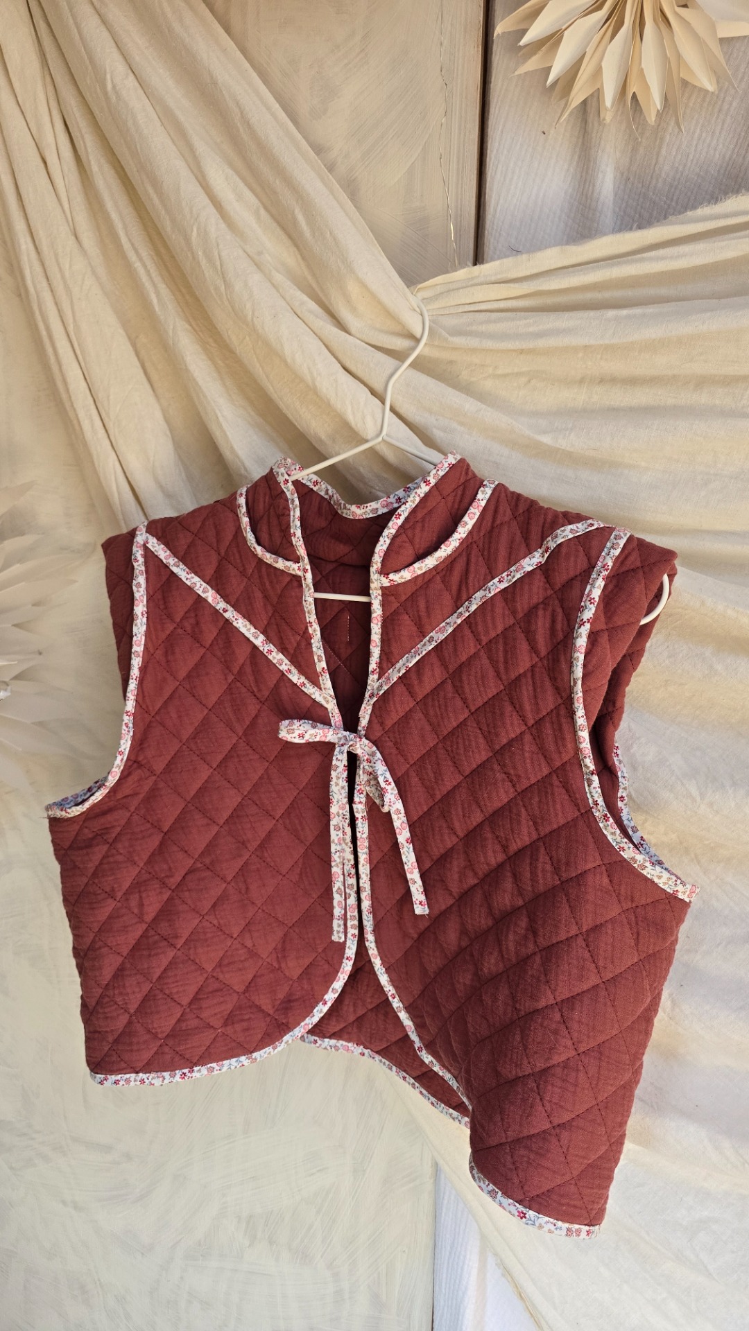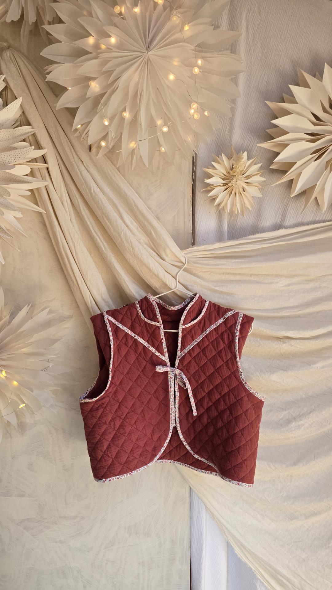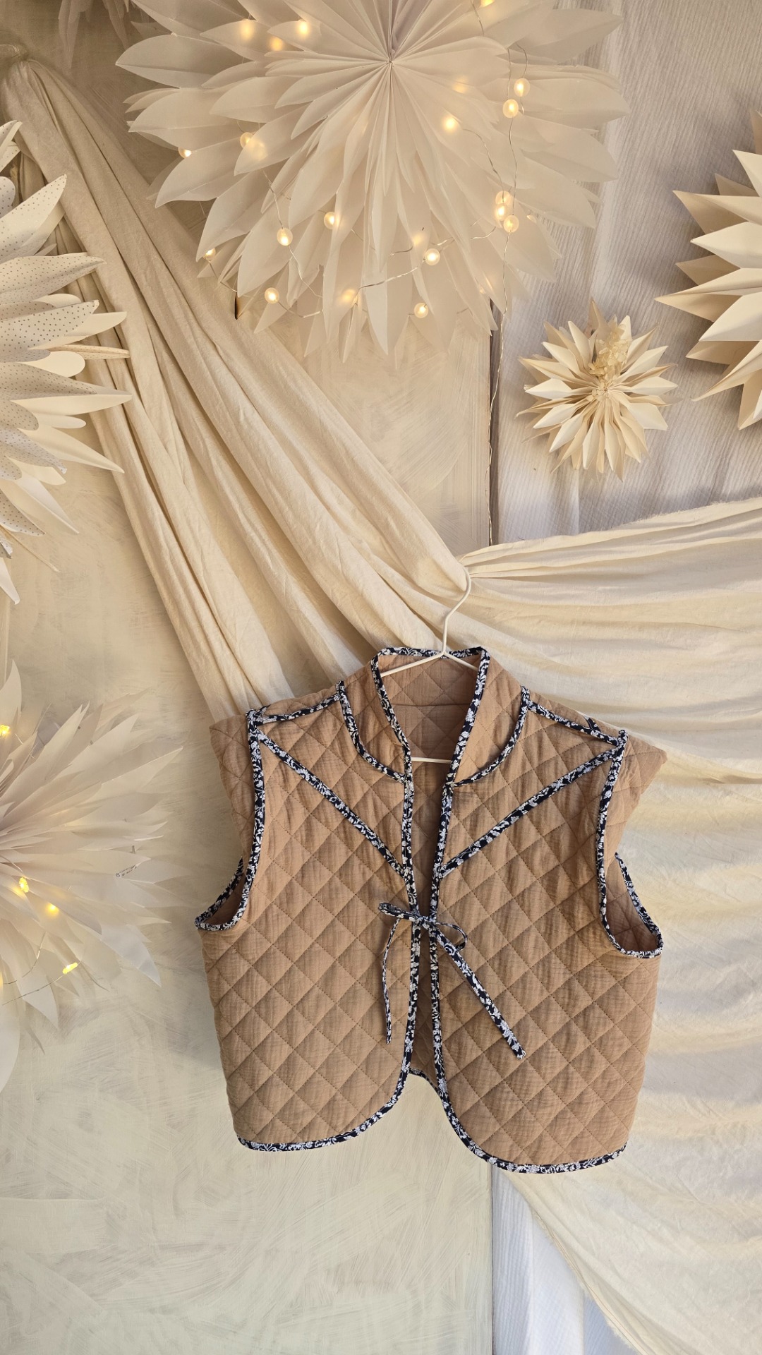 Oboustranná vestička z prošívané bavlny.Krásná jak k šatů, tak k sukni, džínům, či sportovnímu outfitu.
